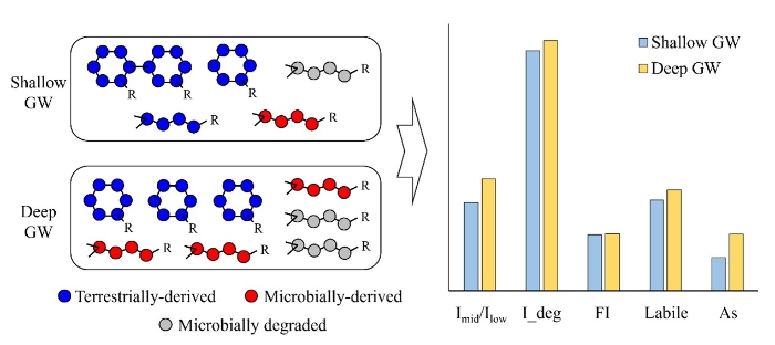 地下水中有机物的降解是富砷含水层中关键生物地球化学过程的主要驱动力,在地下水砷的富集过程中起着重要作用。微生物介导下有机物降解导致的铁氧化物还原性溶解并释放出砷是地下水富砷的最主要机理。然而,引起地下水砷富集的这部分生物活性有机物的来源一直存在着争议。地下水中的有机物通常认为有两个来源:一是地质历史时期植物碎屑与沉积物的共沉积(沉积物来源),二是地表水、灌溉水等入渗补给带来的有机物(地表来源)。一般认为,地表水中有机物的活性高于地下水。然而最近的研究表明,在渗透性较低的地层中被封存的有机物具有显著的微生物活性。因此,这里面的关键科学问题是,如何界定高砷地下水系统中的活性有机物,并找到一种合适的手段来示踪活性有机物的来源。
