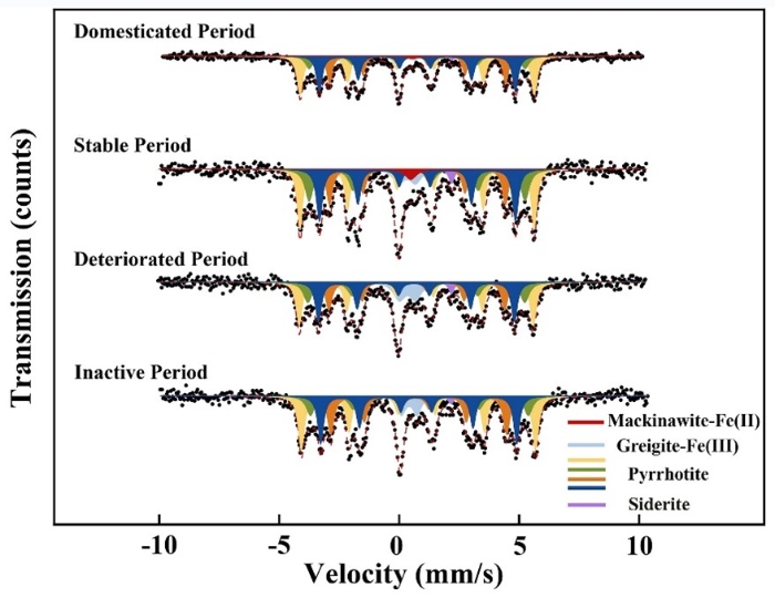 图 3 微生物利用磁黄铁矿还原V(V)过程中矿物的穆斯堡尔谱图