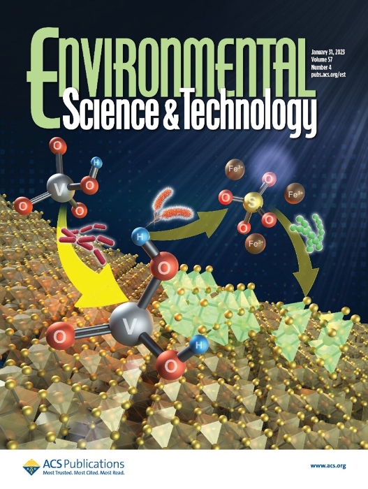 上述研究成果发表在国际权威期刊《Environmental Science & Technology》上,并被选为封面文章: He, J.X., Zhang, B.G.*, Wang, Y.N., Chen, S.M., Dong, H.L., 2023. Vanadate Bio-Detoxification Driven by Pyrrhotite with Secondary Mineral Formation. Environmental Science & Technology, 57, 1807–1818. [IF2021=11.357]