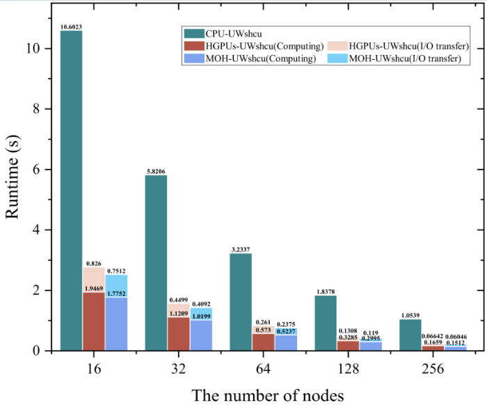 3. 通过MPI+OpenMP+HIP(MOH)三级混合并行编程模型进一步优化了UWshcu的异构算法,实现了节点内计算资源的充分利用。此外,提出了一种合理划分CPU和GPU计算负载的算法,可以最小化UWshcu的计算时间。