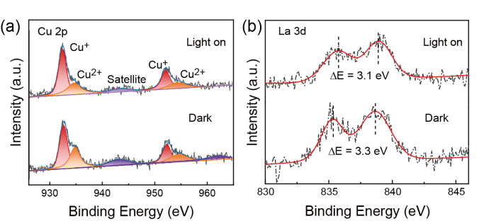 2. 原位X射线光电子能谱(XPS)表明原子级Cu-N-La给-受体结构可驱动电子从La原子向Cu原子迁移,从而加速光生电子的转移。