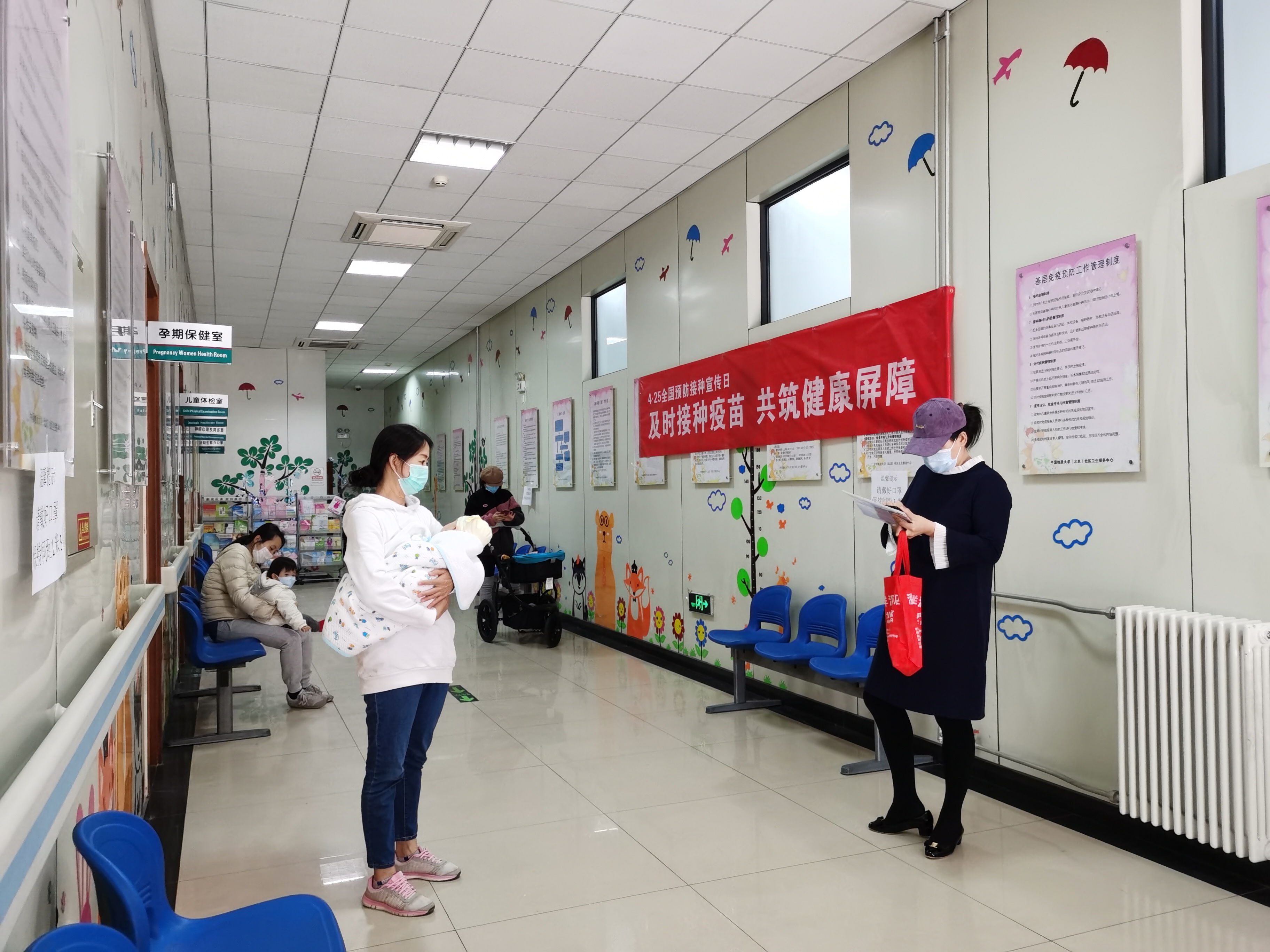 4月25日是我国第34个“全国儿童预防接种日”,4月24日上午,校医院直属党支部医护人员深入地大一社区,在小花园进行“及时接种疫苗,共筑健康屏障”及孕妇五知五会宣传活动。