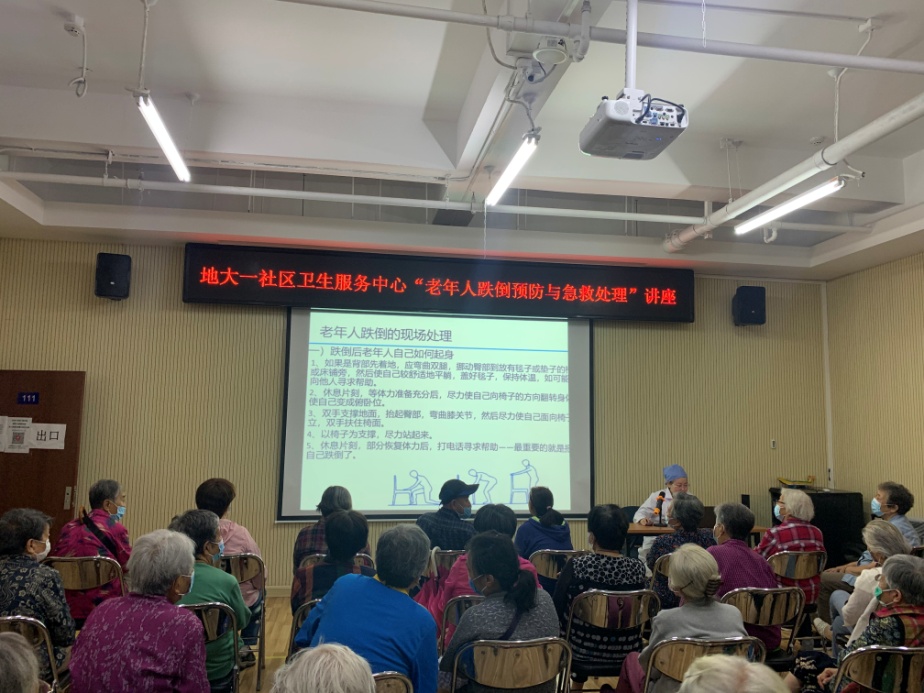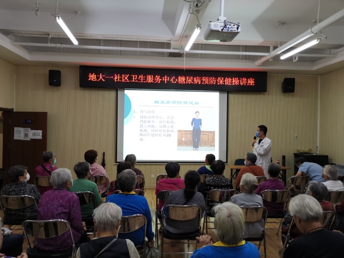 为持续推进海淀区老年健康服务体系建设,优化老年人就医环境,提升老年人就医体验,更好地满足老年人健康服务需求,校医院直属党支部发挥党建引领作用,制定了相关工作计划,积极开展“我为群众办实事”主题活动。在国庆来临之际,2021年9月24日下午,中国地质大学(北京)社区卫生服务中心在地大一社区活动中心举办了糖尿病的中医预防、胰岛素使用注意事项及老年人跌倒预防与急救处理等知识讲座。辖区内50余名老年人冒雨参加了此次讲座。