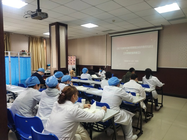 教职工政治理论学习共有四部分内容。首先由教师工作委员会联络员刘淑芳导读学习《关于完善高校教师思想政治和师德师风建设工作体制的指导意见》和《关于完善教师思想政治和师德师风建设工作体制机制的实施方案》。其次由积极分子魏洁和李瑞强导读学习习近平《用新时代中国特色社会主义思想铸魂育人贯彻党的教育方针落实立德树人根本任务》一文。最后由护理部王淼导读学习雄安新区专题。