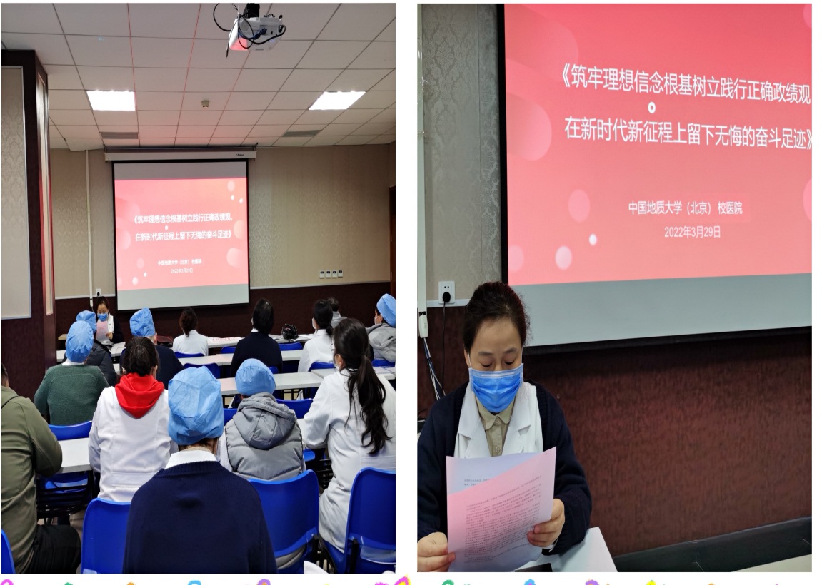 2022年3月29日下午,校医院直属党支部教师工作委员会组织党员和职工进行政治理论学习。学习由校医院直属党支部宣传委员、教师工作委员会联络员刘淑芳主持。