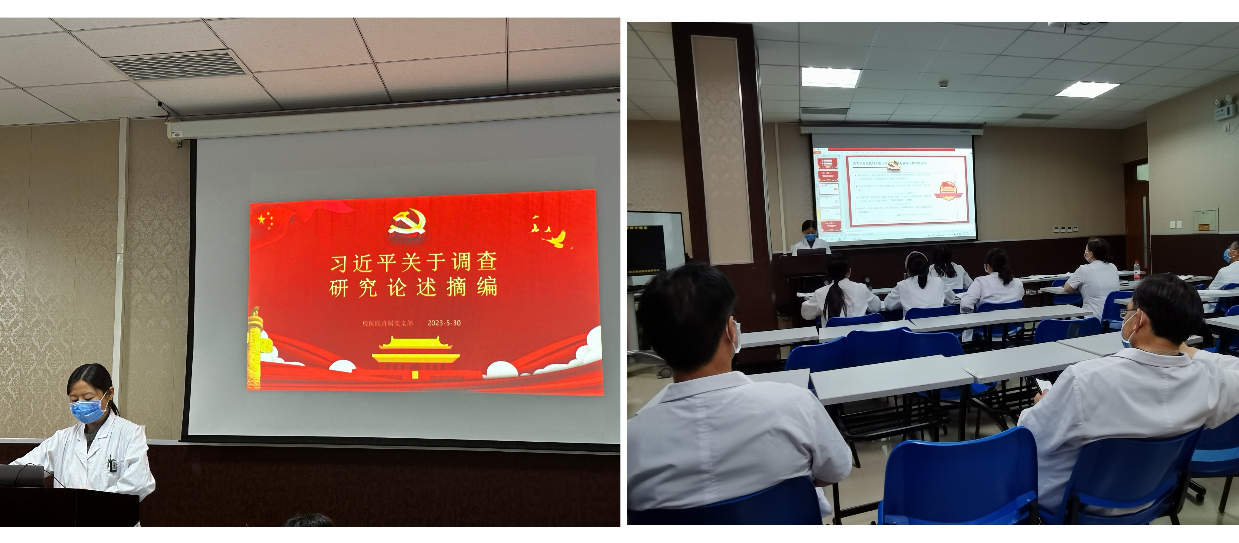 2023年5月30日下午,校医院直属党支部在校医院公共卫生部108室举行主题教育读书班专题学习,全体党员和积极分子参加了学习。