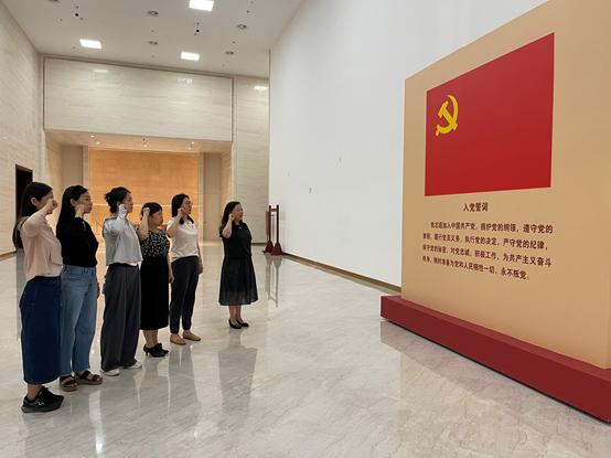 在宣誓厅,面对鲜红的中国共产党党旗,胡英书记带领党员们重温入党誓词。“我志愿加入中国共产党,拥护党的纲领,遵守党的章程,履行党的义务……”。党员们将不忘入党初心,牢记使命,用党的奋斗历程和伟大成就鼓舞斗志、明确方向,用党的光荣传统和优良作风坚定信念、凝聚力量,用党的实践创造和历史经验启迪智慧、砥砺品格,更加珍惜来之不易的幸福生活。