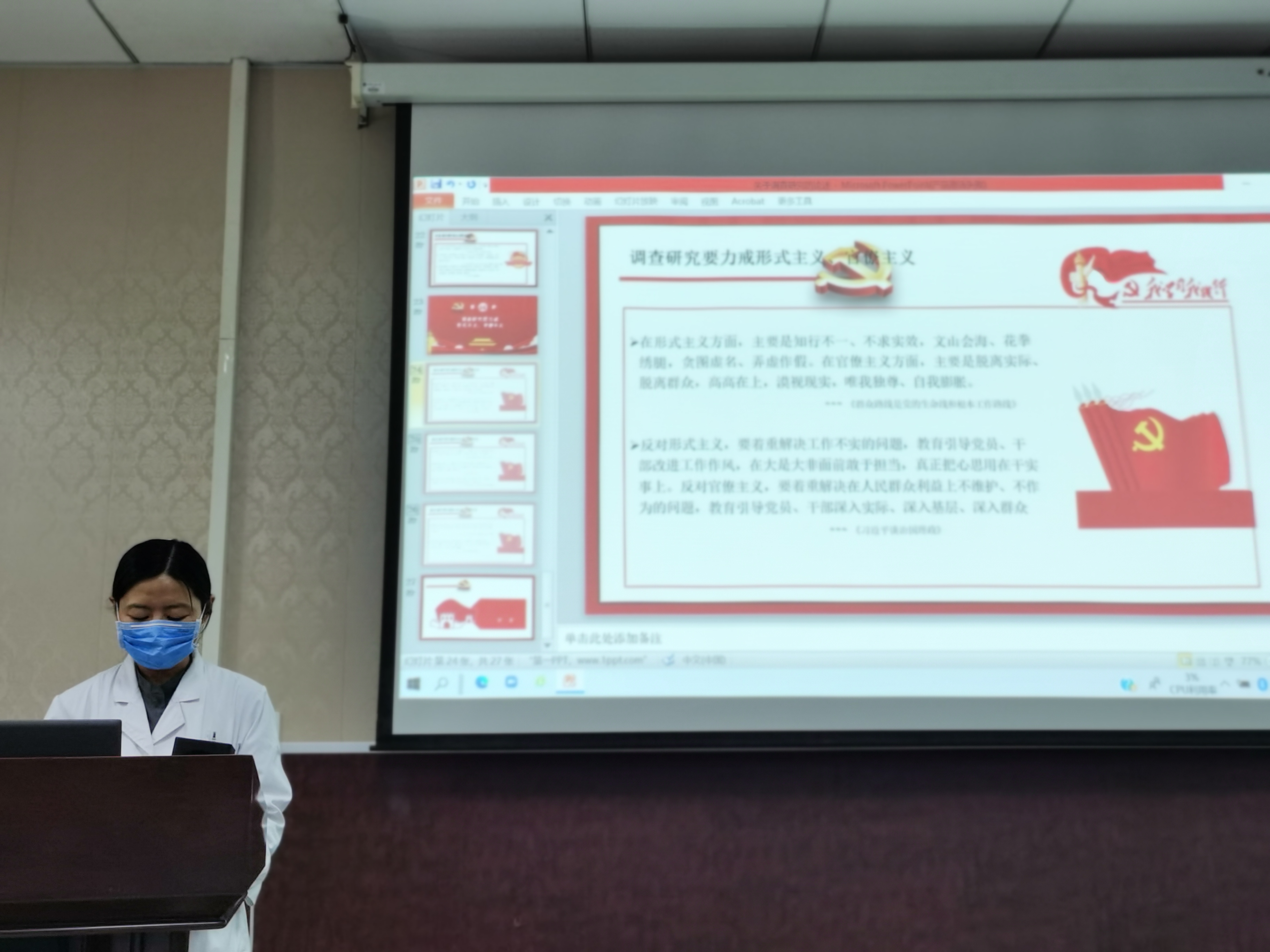 2023年6月6日下午,校医院直属党支部在校医院公共卫生部108室举行主题教育读书班专题学习,全体党员、积极分子和部分职工参加了学习。