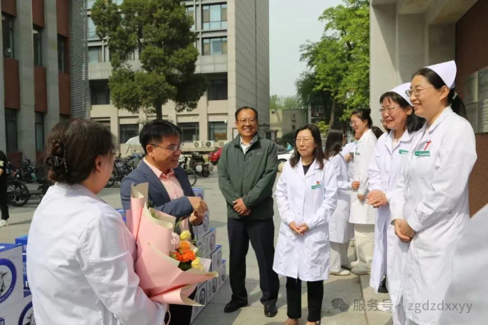 2025年5月12日上午9时30分,校党委常委、副校长吴怀春在校工会常务副主席王志坚、专职副主席何巧玲的陪同下,亲切慰问我校医院的全体医护人员。