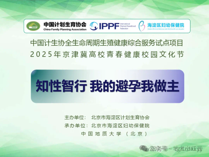 青春健康,你我共行。为了普及生殖健康知识,树立正确观念,提升自我保护能力,促进个人健康发展。本周二下午将举办“2025 年京津冀高校青春健康校园文化节”系列活动 之 “ 知性智行,我的避孕我做主 ”专题讲座。本次活动由北京市海淀区计划生育协会、北京市海淀区妇幼保健院与中国地质大学(北京)三方携手,由校团委、校医院承办。特邀北医三院妇科专家王威博士前来讲课。