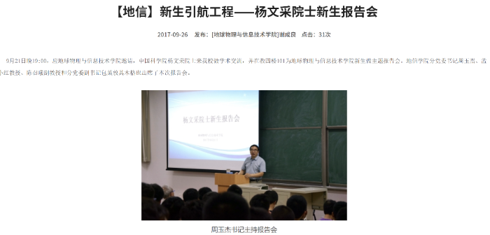 2017年杨文采院士为研究生新生做“引航”系列报告会
