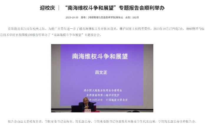 2 023年联合国大陆架界限委员会首届委员吕文正研究员做南海维权讲座
