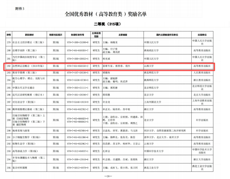 1.首届全国优秀教材二等奖 ——《自然辩证法2018年版》
