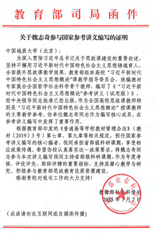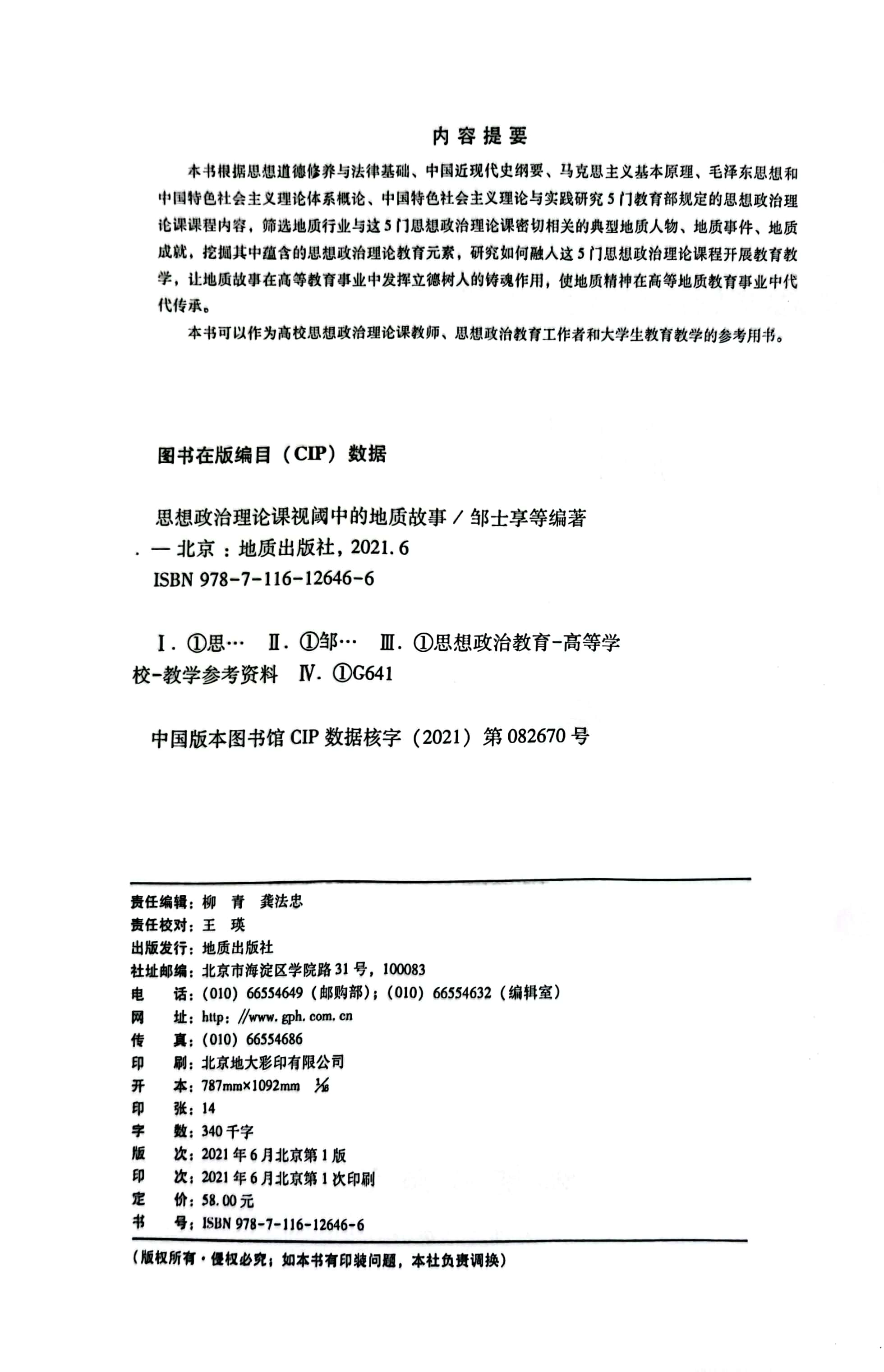编写教辅《思想政治理论课视域中的地质故事》