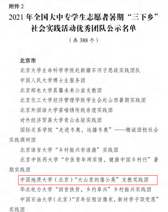 2.全国大中专学生志愿者暑期“三下乡”社会实践活动优秀团队