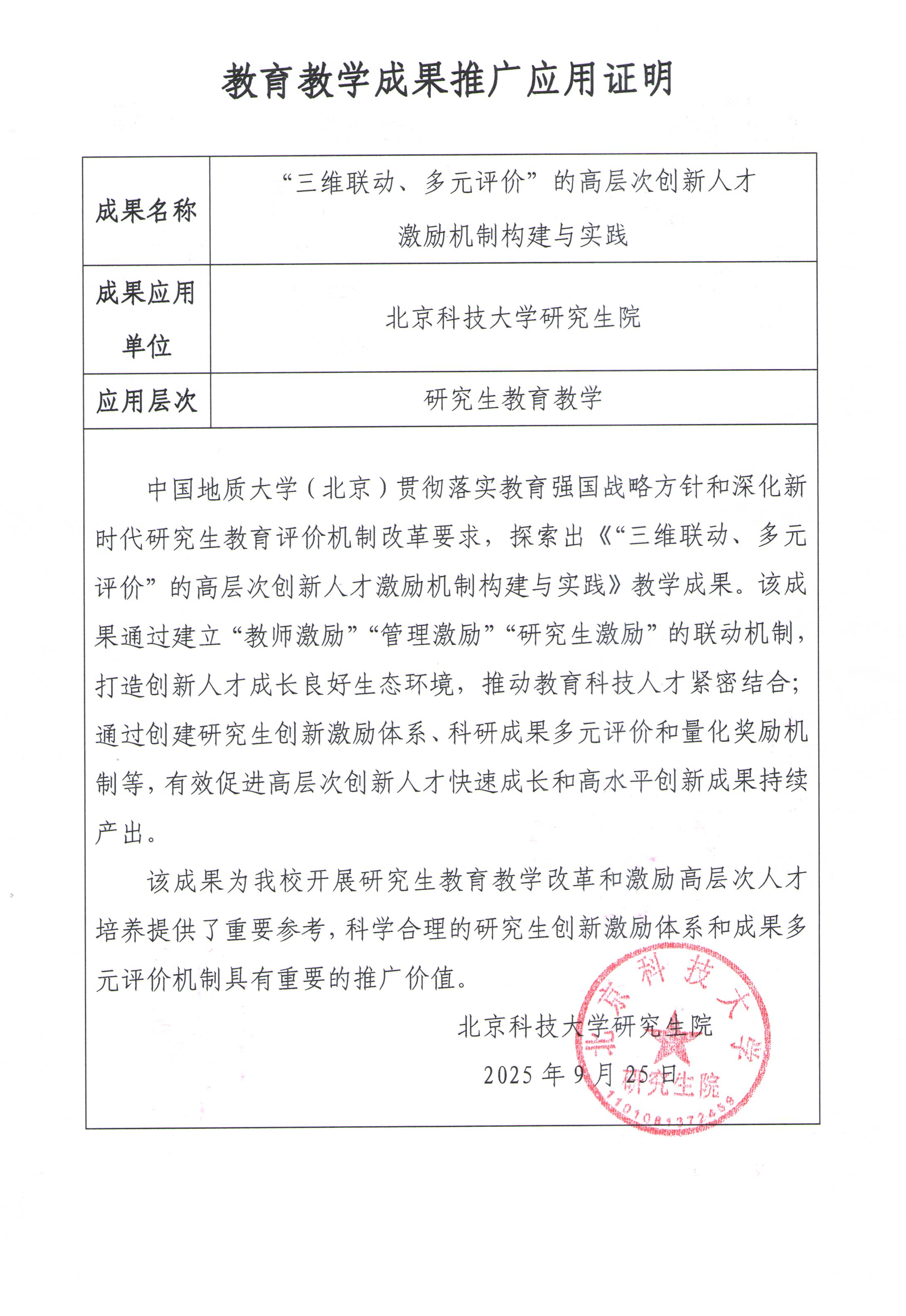 教学成果对其他高校研究生教育改革工作起到的重要参考作用证明(北京邮电大学、北京科技大学、中国矿业大学(北京))