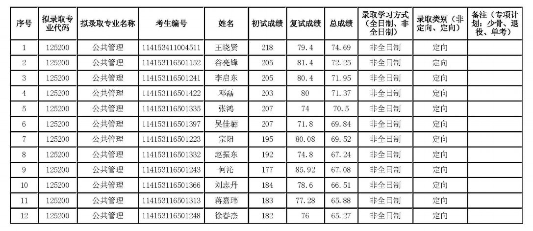 2023年中国地质大学(北京)经济管理学院公共管理专硕(MPA)一志愿拟录取名单