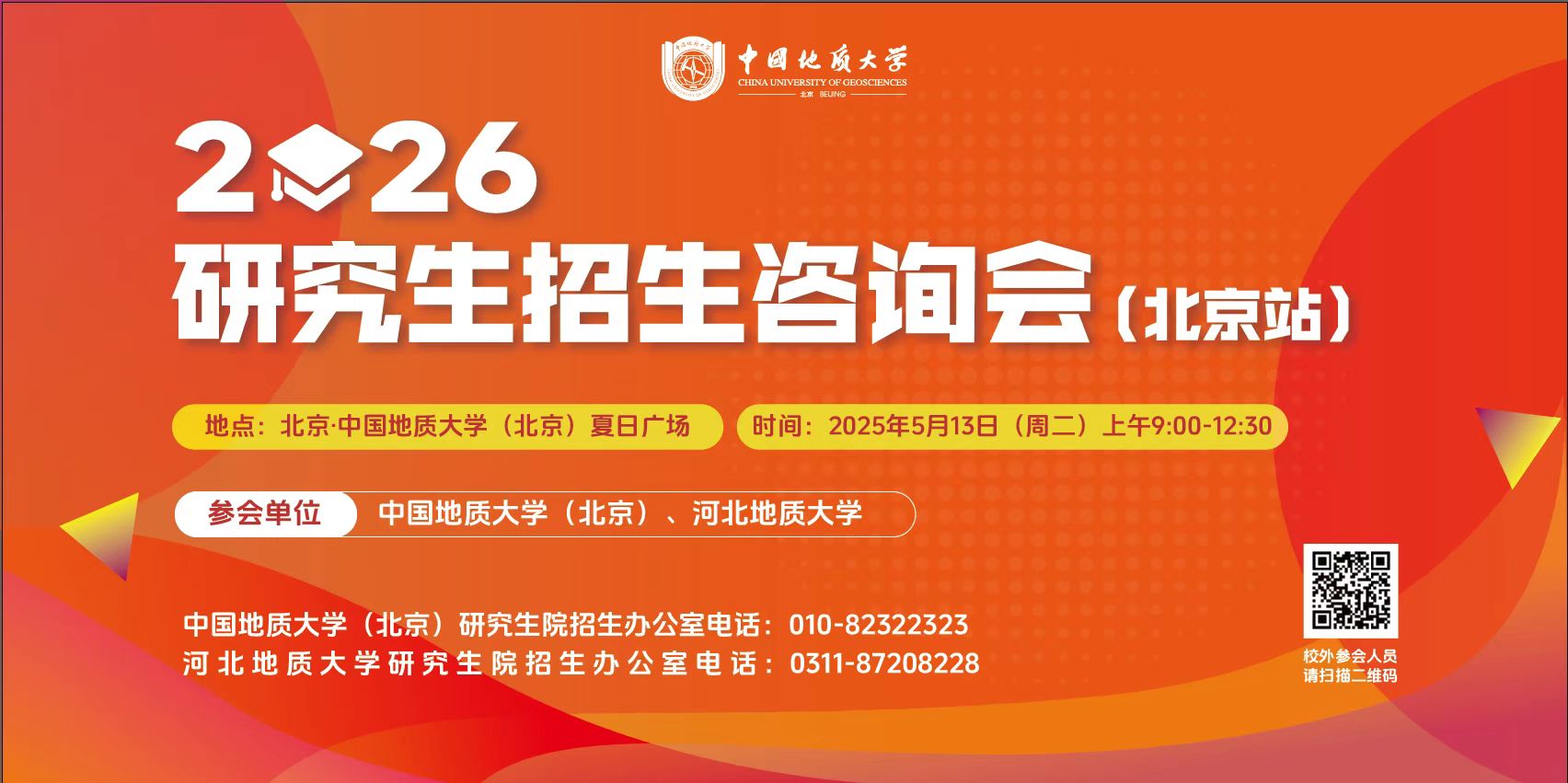 5月13日,中国地质大学(北京)与河北地质大学联合主办的2026年研究生招生咨询会(北京站),在中国地质大学(北京)夏日广场顺利举办。本次活动聚焦为意向报考两校的学子提供权威、全面的招生资讯,深度解答报考困惑,助力优秀生源精准了解升学路径。